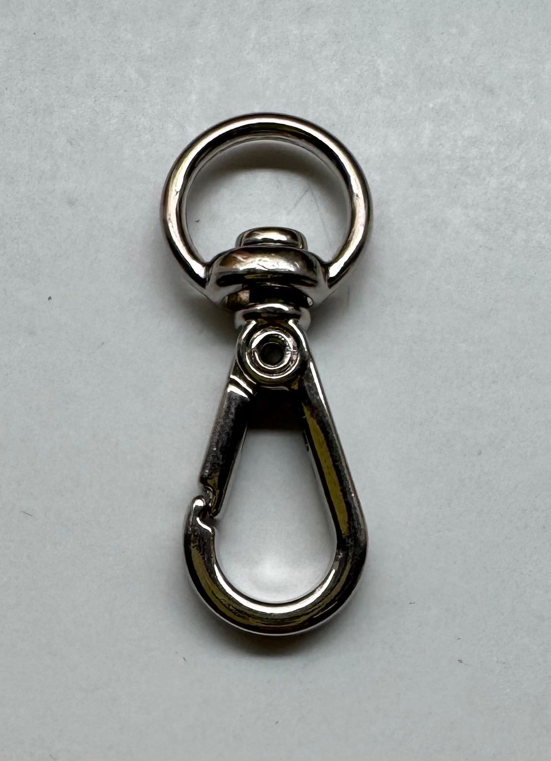 Descrição: Resistente e com design elegante, o mosquetão com base arredondada é ideal para proporcionar um acabamento sofisticado a bolsas e diversos tipos de artesanato. Além de funcional, agrega estilo e durabilidade às suas peças.