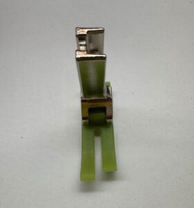 Pé calcador de teflon para máquina reta industrial, ideal para costurar couro, vinil, plástico e tecidos sintéticos.